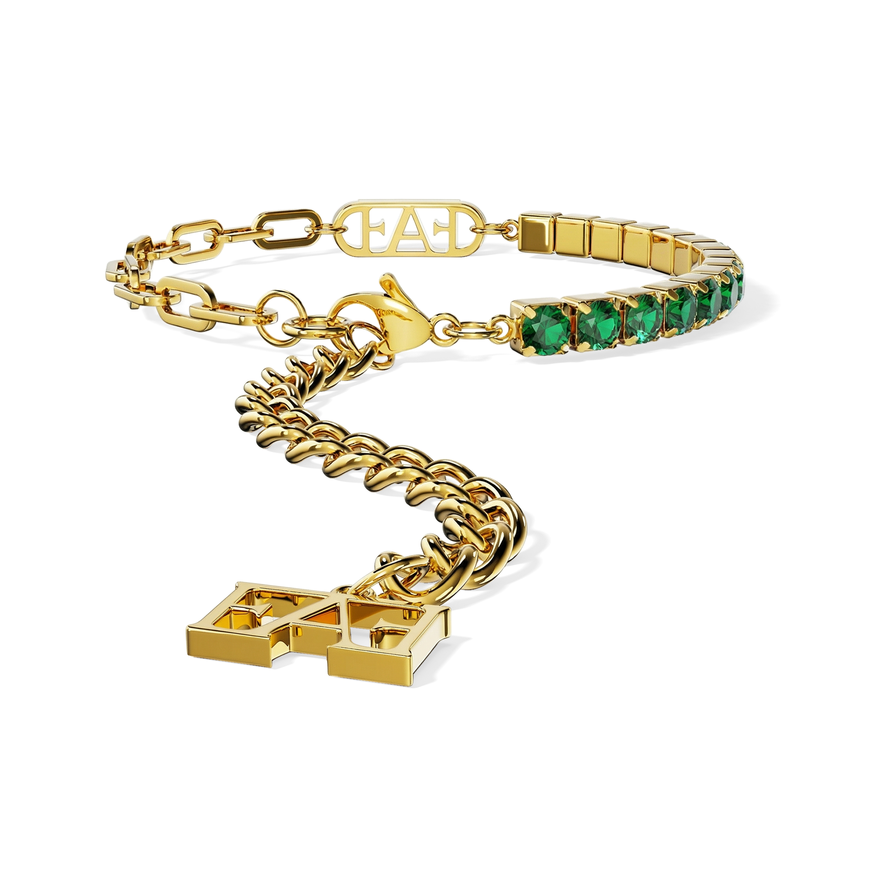 Glam Tennis Chain Bracelet / Green Emerald Color