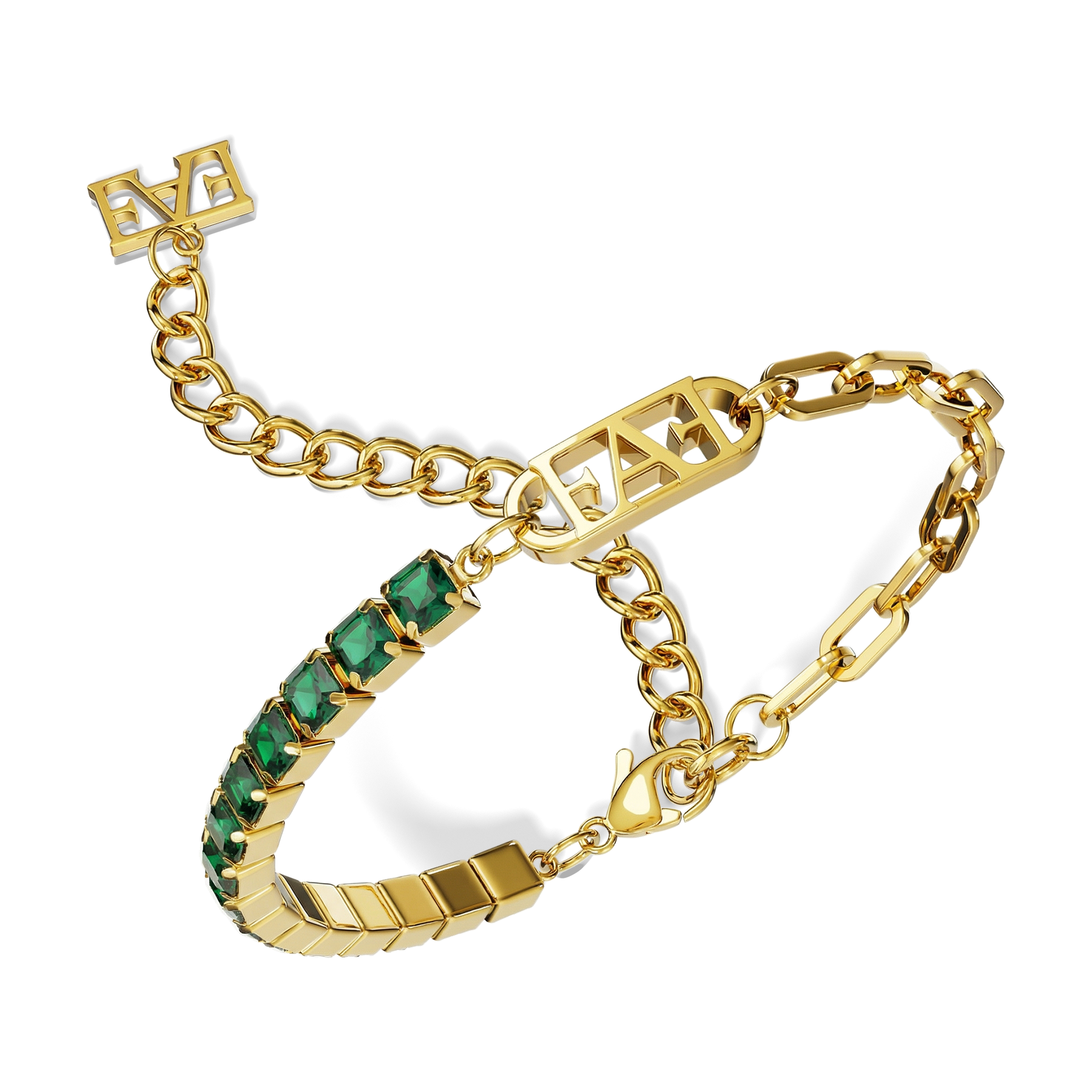 The Glam Tennis Chain Bracelet embodies contemporary elegance through a bold yet fluid design. Characterized by its layered chain construction, adjustable silhouette, and distinctive Enzo Attini logo detailing, it creates a strong visual identity while maintaining a refined and sophisticated aesthetic. The extended chain and emblem charm add movement and character, making the bracelet a true statement piece.