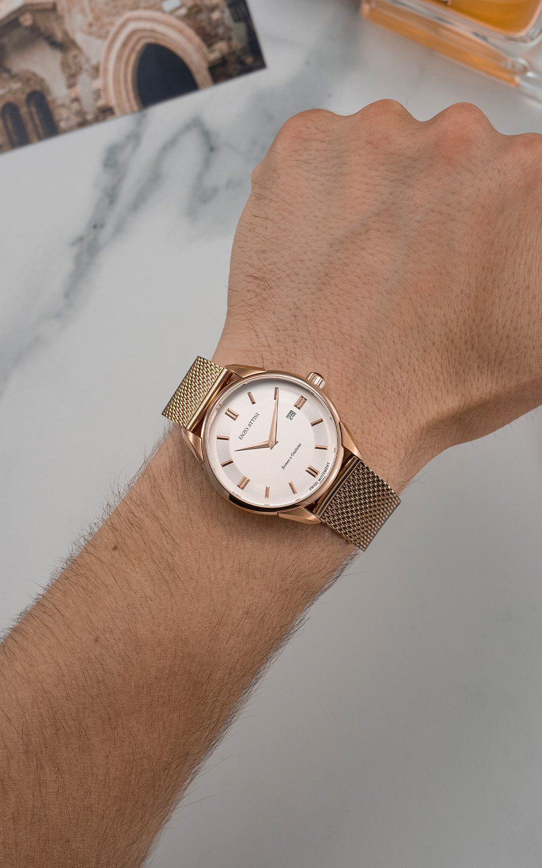With this timepiece, Enzo Attini represents the wonderful tradition of Italian design and cultural heritage. The essence of each designed watch and the hand engraving on the case back are inspired by Italian history, art and cultural heritage as well as the breathtaking places that serve as the most amazing destinations in Italy.